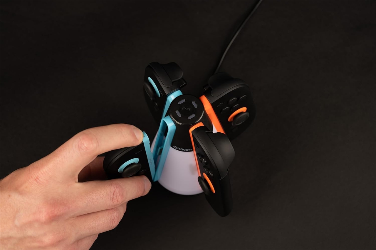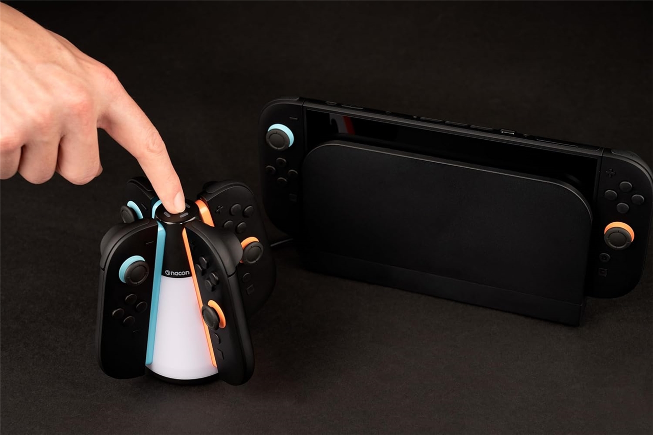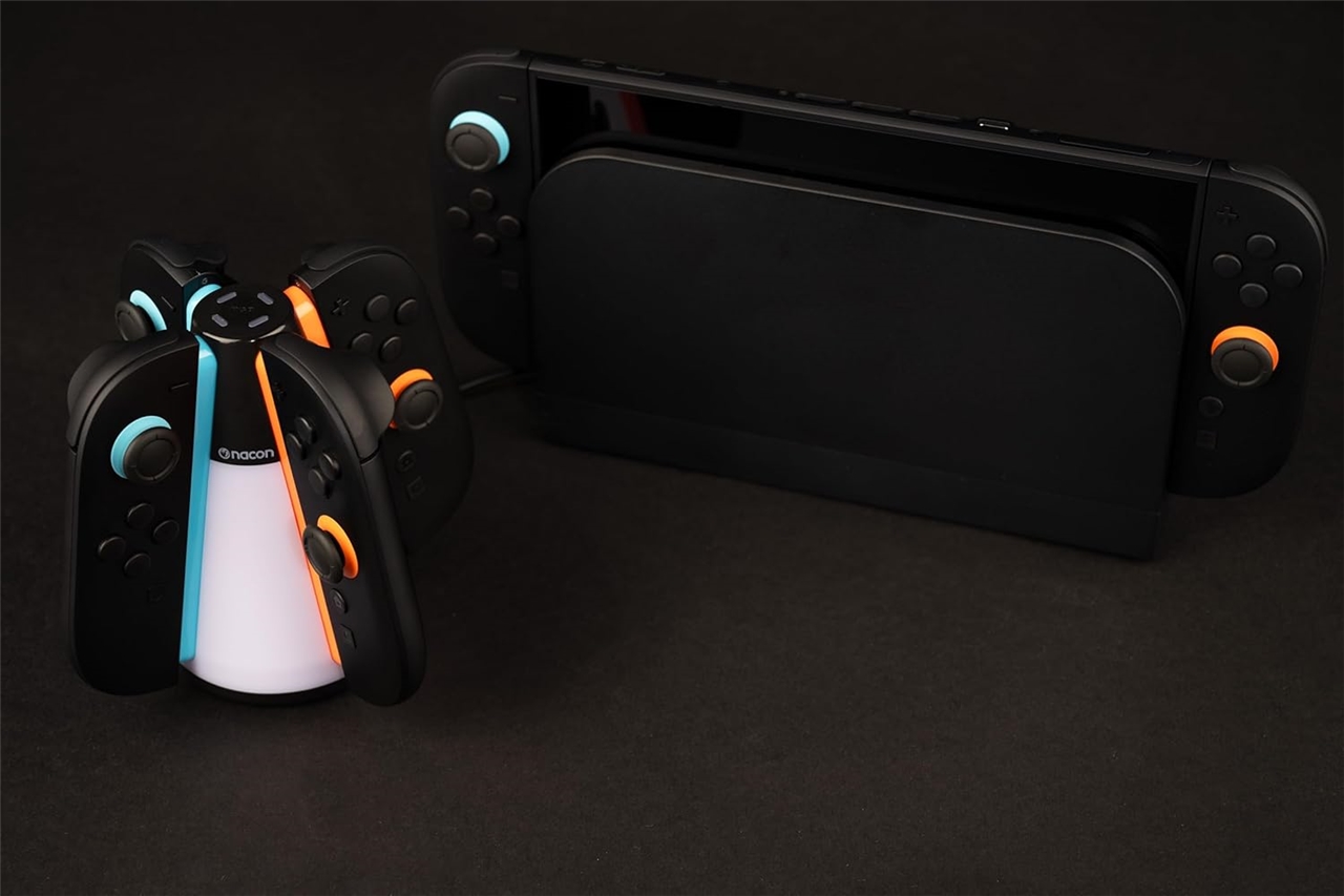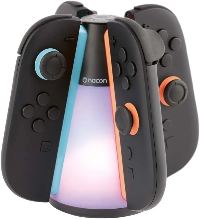 Poskrbite, da bodo vaši krmilniki Joy-Con™ 2 polni in takoj pripravljeni za igranje! Ta elegantna postaja za polnjenje vam omogoča hkratno polnjenje do štirih krmilnikov Joy-Con™ 2 – idealno za igranje v več igralcih ali za družine z več krmilniki.