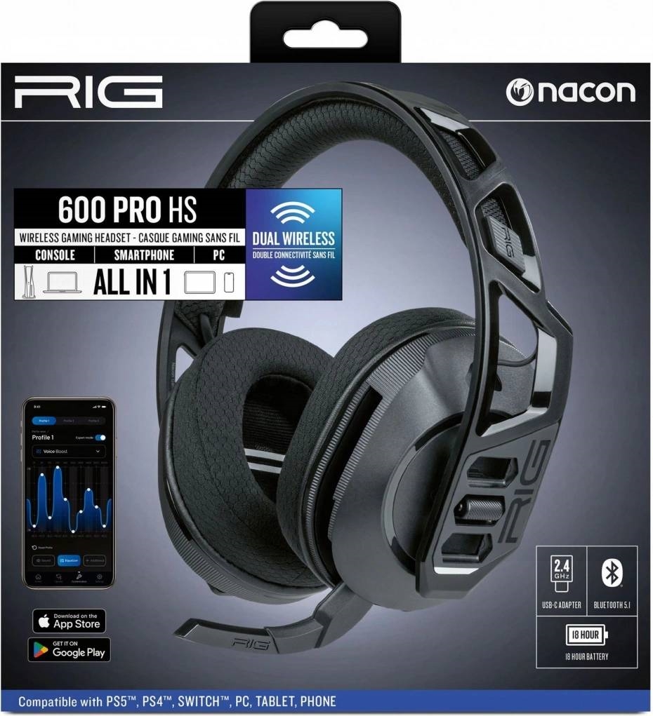 Nacon RIG 600 PRO HS, brezžični igralni headset - Doživite visokokakovosten igralni zvok na PlayStationu, PC ali Nintendo Switch z dvojnim brezžičnim načinom z nizko zakasnitvijo 2,4 GHz in Bluetooth 5.1.