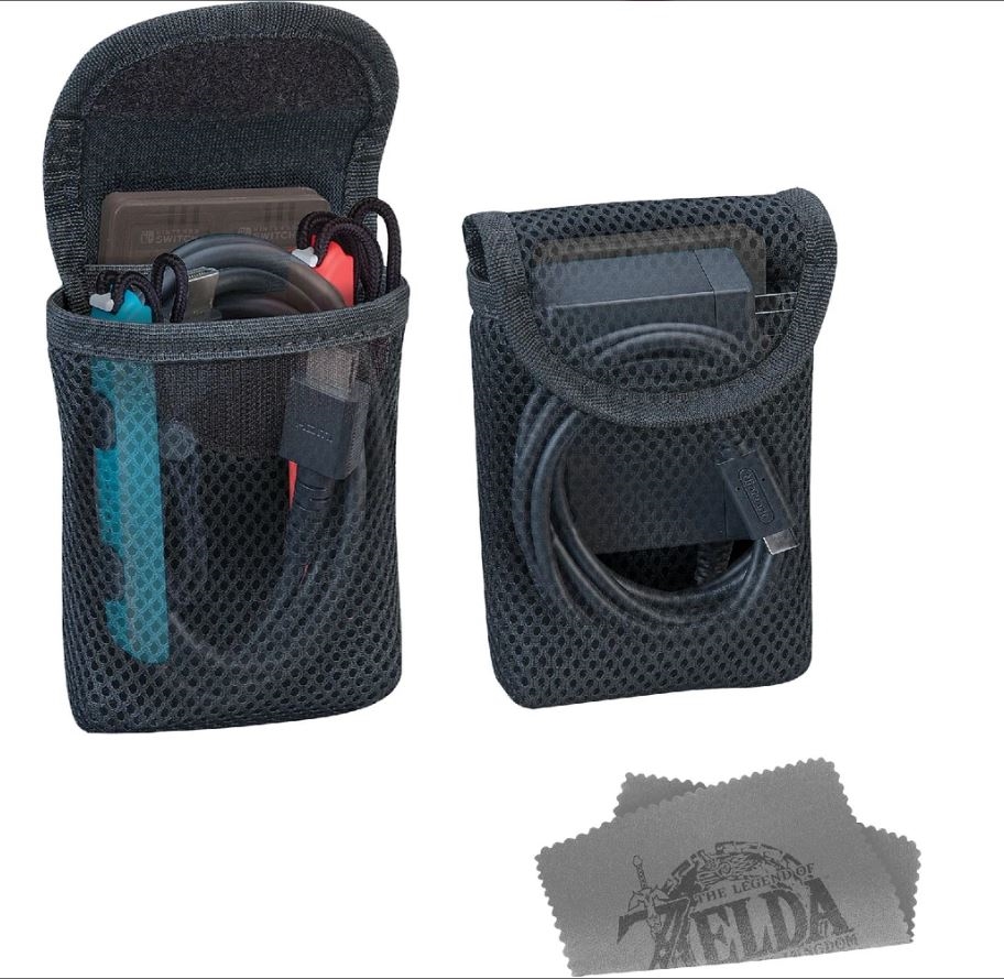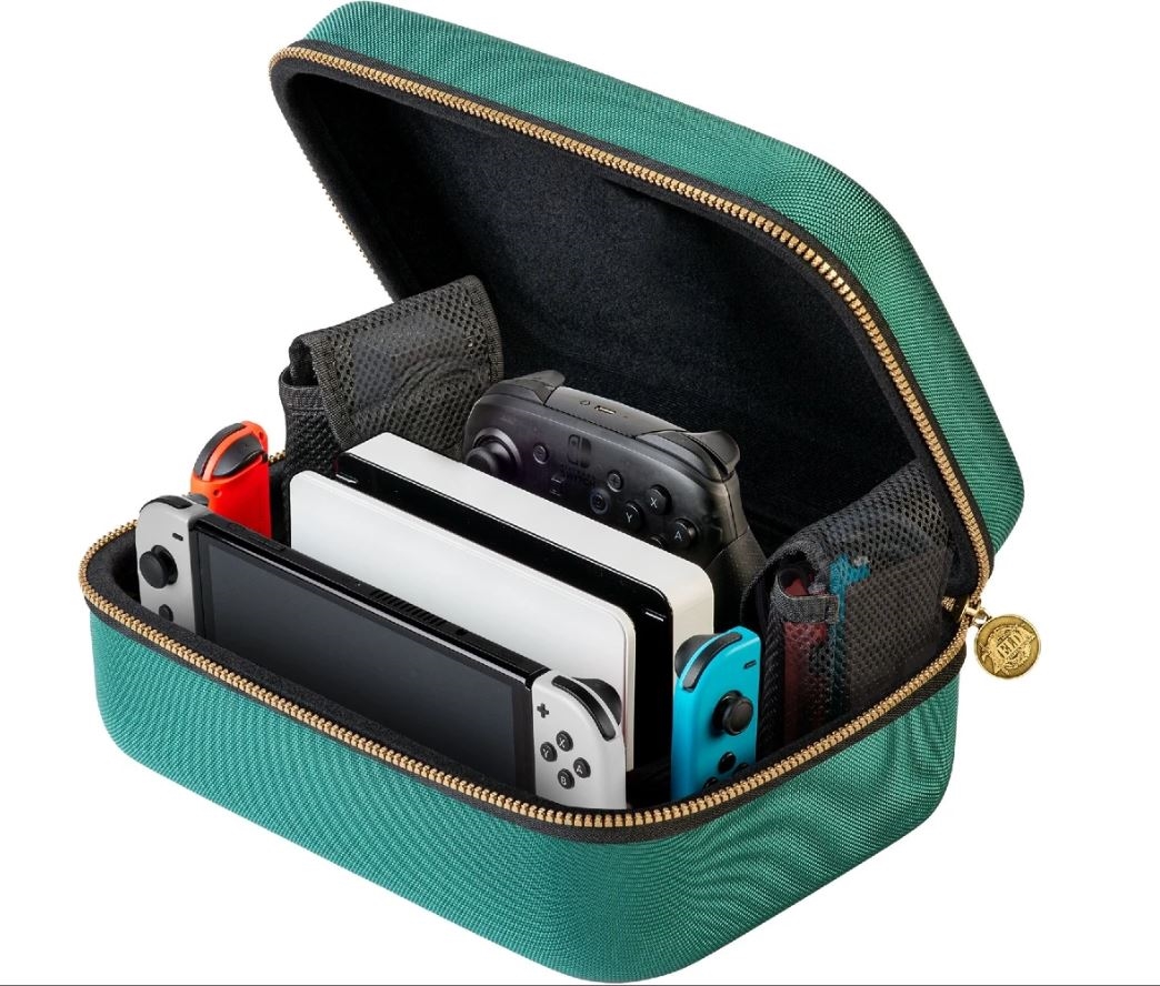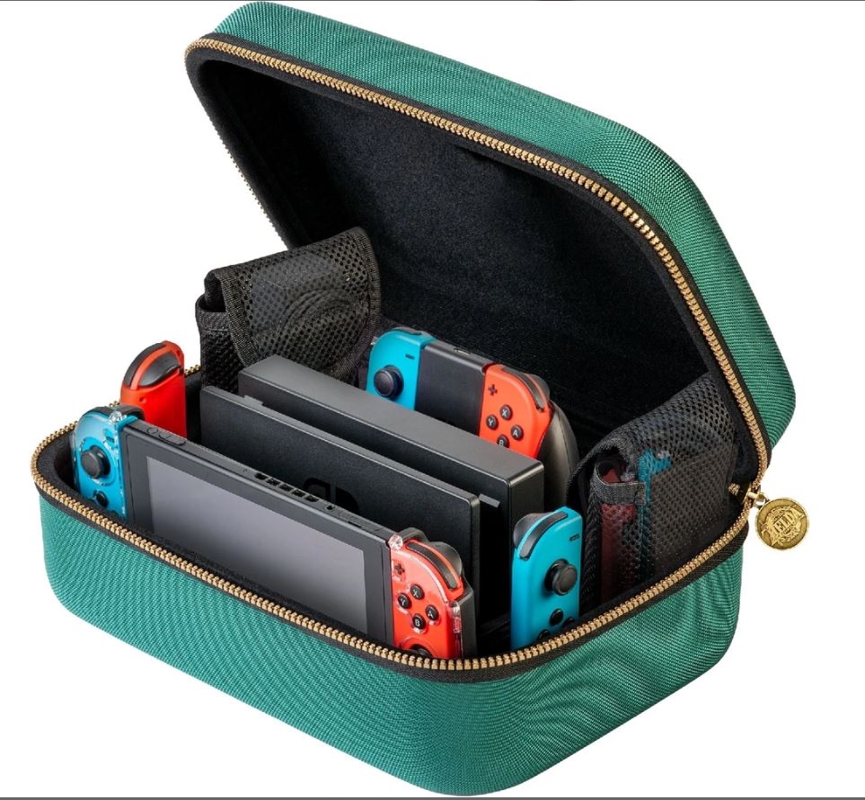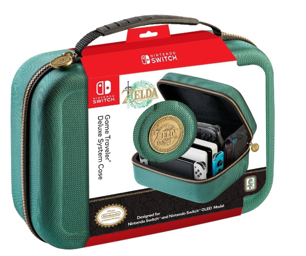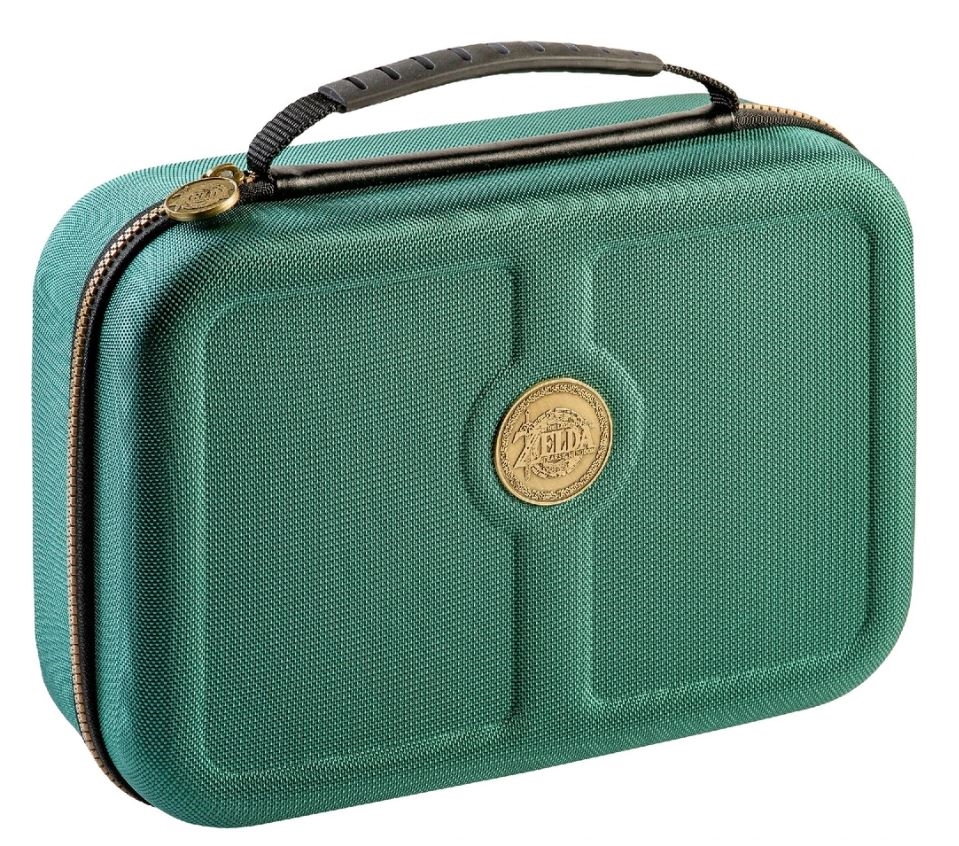 Prenašajte svojo igralno konzolo Nintendo Switch varno s to luksuzno torbo z motivom igre The Legend of Zelda: Tears of the Kingdom! Torba sprejme konzolo, dok, krmilnike Joy-Con, Joy-Con Grip ali krmilnik Pro Controller, potrebne kable in drugo drobno opremo. Vključena sta dva etuija za igre in dva etuija za microSD kartice. Primerno za modele Nintendo Switch / Switch Lite / Switch OLED.