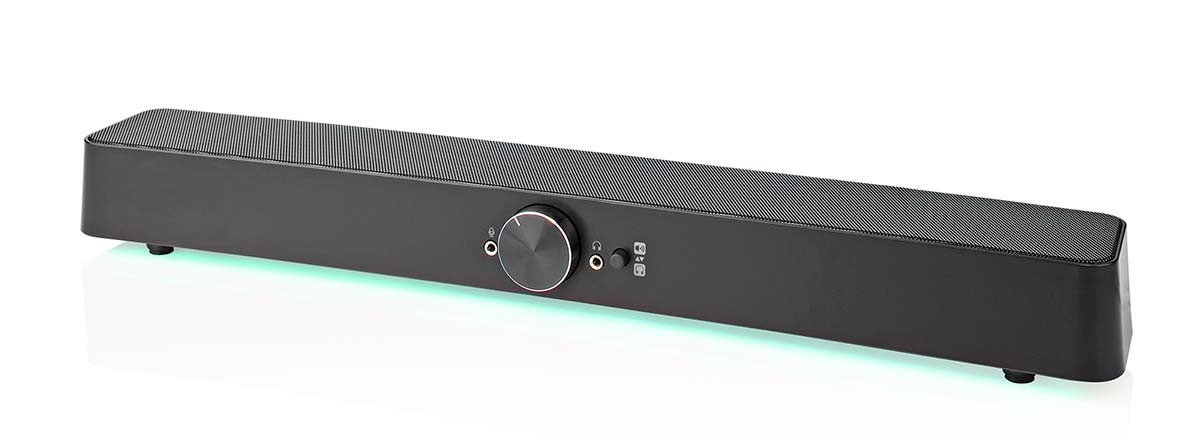 Ta Nedis soundbar vsakemu igralnemu doživetju doda novo dimenzijo zaradi vgrajene barvne LED-osvetlitve.