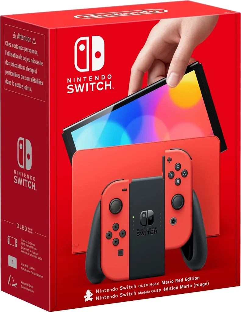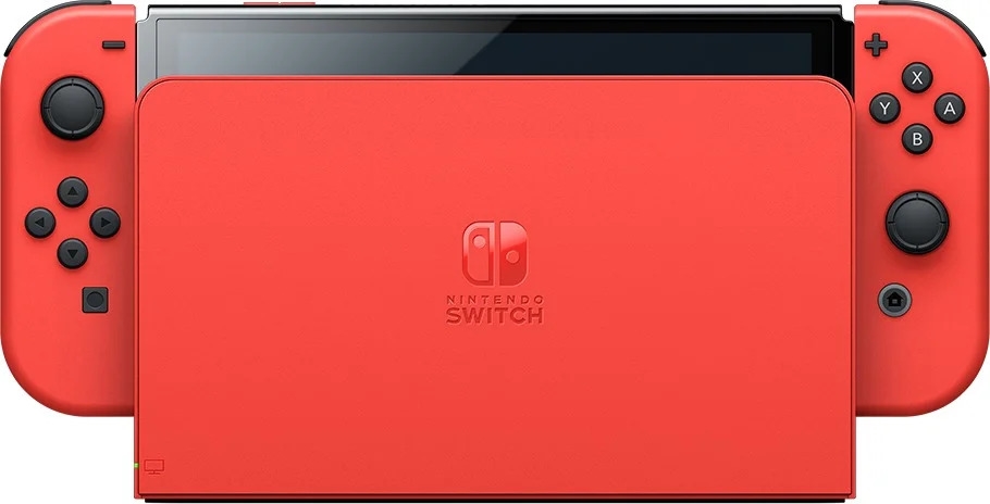 Nintendo Switch (OLED model) Mario Red Edition je prelomna domača igralna konzola, sestavljena iz treh delov. Prvi predstavlja samo računalniško enoto konzole z 7" zaslonom. Za drugi del lahko štejemo dokacijsko postajo, v katero se vstavi računalniška enota. Zaradi konektorja HMDI prenaša sliko v ločljivosti Full HD na vaš televizor. Tretji del predstavljajo napredni snemljivi krmilniki Joy-Con.