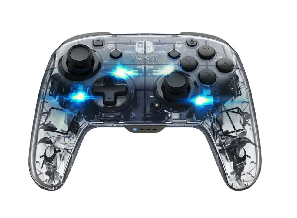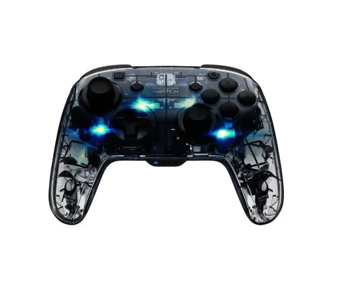 PDP prihaja z eleganten žičnim krmilnikom za Nintendo Switch, ki ima sodoben dizajn s prizmatično LED osvetlitvijo, dolgo dobo igranja do 20 ur, priključkom (3,5 mm jack) za priklop slušalk in upravljanjem glasnosti neposredno na D-padu.