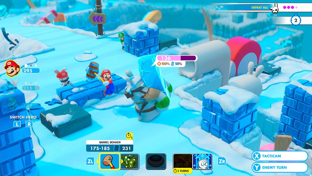 Pridružite se tem osmim junakom in raziščite svet, izkrivljen zaradi nagajivih Rabbids. Poln je skrivnosti in prikritih namigov na druge Mario igre. Pretentajte nepredvidljive sovražnike v dinamičnem poteznem bojnem sistemu in kooperativnih izzivih, pri katerih boste reševali še dodatne uganke. Odkrijte sodobno borbeno pustolovščino, zasnovano posebej za sisteme Nintendo Switch, in jo delite s prijatelji.