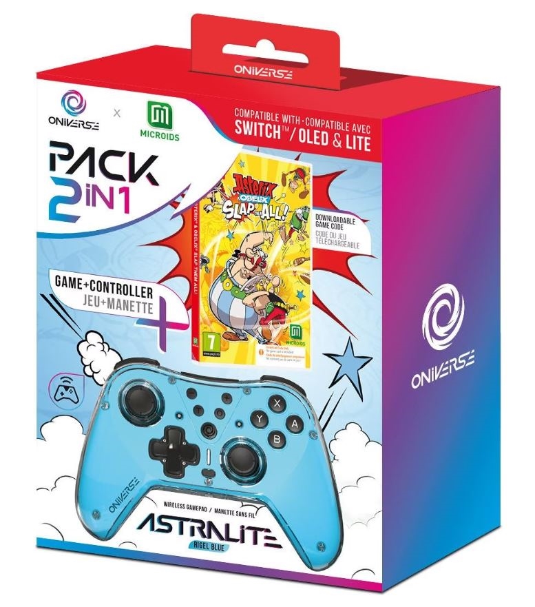 Paket Oniverse x Microids s krmilnikom Astralite + kodo v škatli igre.