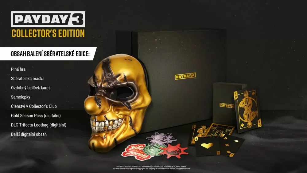 članstvo v The Collector's Club (spletno) - ekskluzivno članstvo v zaprti skupnosti, na voljo samo lastnikom zbirateljske izdaje; ti člani bodo prejeli povabilo na spletne pogovore z razvijalci PAYDAY 3 in pridobili dostop do dodatnih ekskluzivnih priložnosti)