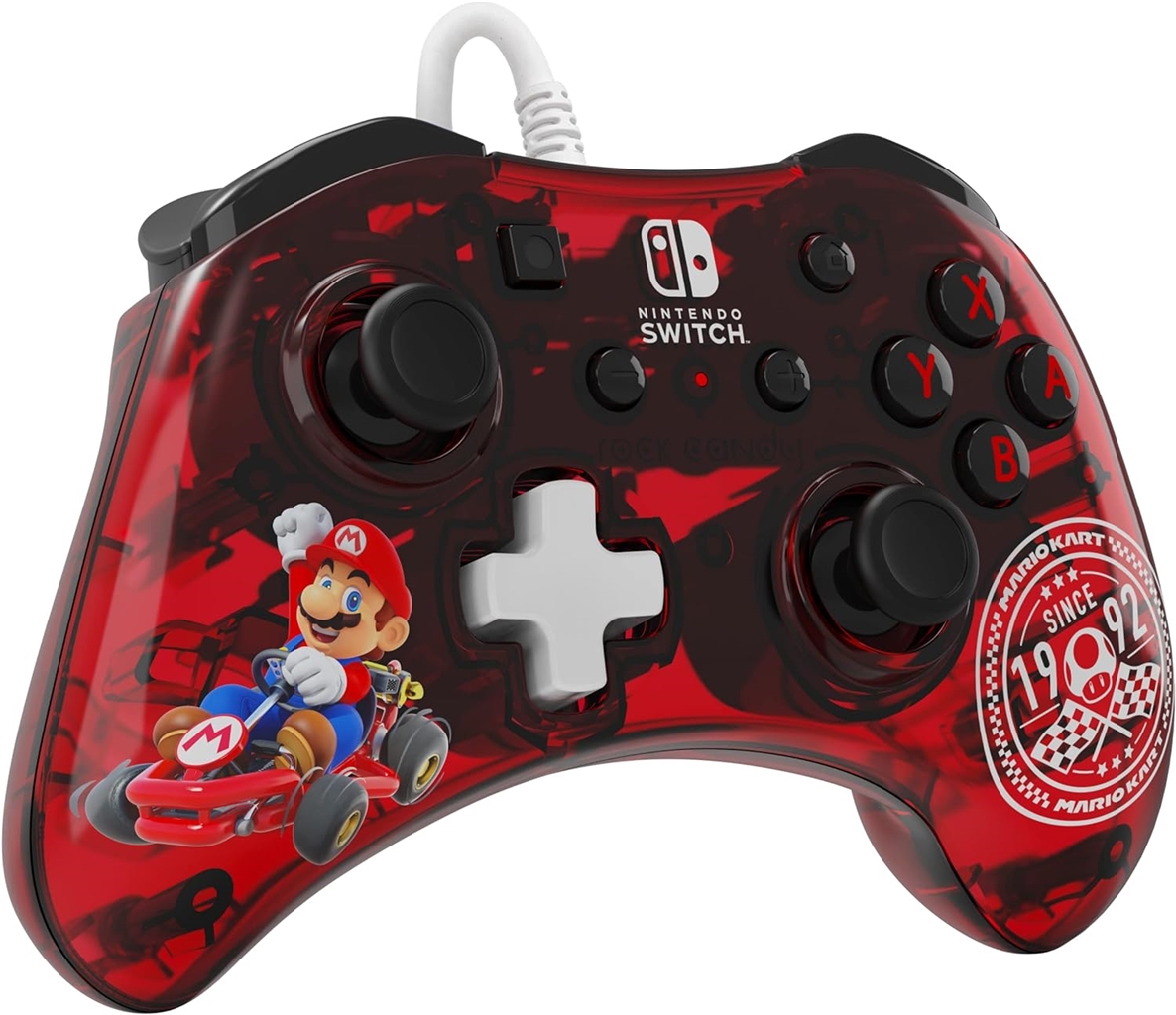 Ta živo obarvan krmilnik ima prozorno ohišje iz polikarbonata, ki vam omogoča pogled v notranje vezje krmilnika, medtem ko bodo bleščeči beli poudarki poskrbeli, da bo vaš krmilnik izstopal! Zaradi nove velikosti Rock Candy Wired Controller je bolj ergonomičen in udobneje sede v roke vseh starostnih skupin. Odstranljiv kabel vam nudi dovolj prostora za igranje, medtem ko so konkavni analogni palčki zasnovani za optimalno natančnost.