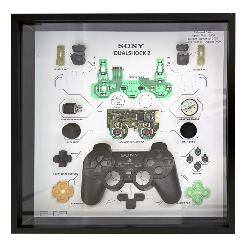 Izvirna dekoracija za sobo vsakega igralca, ki ima rad retro igre! Oglej si vsako komponento, ki se nahaja znotraj krmilnika DualShock 2 za PlayStation 2 na tem shadowboxu, ki bo zagotovo pritegnil pozornost.