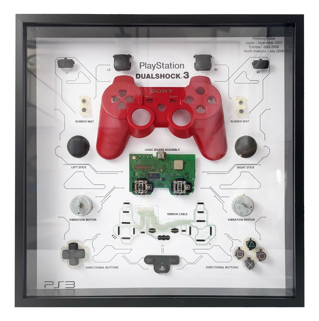 Rozebraný ovladač Dualshock 3 pro konzoli PlayStation 3 v hlubokém rámečku.