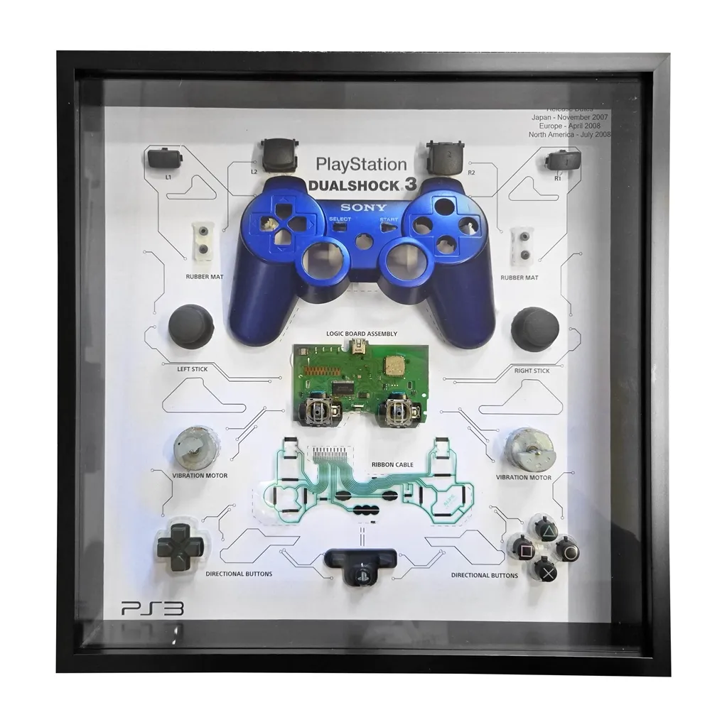 Rozebraný ovladač Dualshock 3 pro konzoli PlayStation 3 v hlubokém rámečku.
