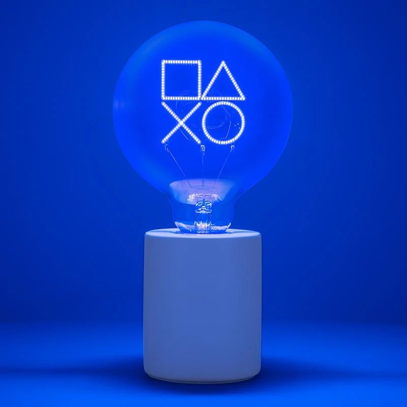 Njena dekorativna LED žarnica E27 ima filament v obliki ikone PlayStation, ki sije s klasičnim modrim sijajem.