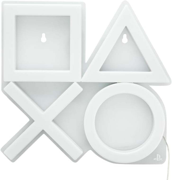 25 cm visoka stenska svetilka prikazuje takoj prepoznavne ikone kontrolerja PlayStation - trikotnik, krog, križec in kvadrat. Zaradi žive večbarvne svetlobe je odlična za vsako igralno sobo. Napajajte svetilko s pomočjo priloženega USB kabla.