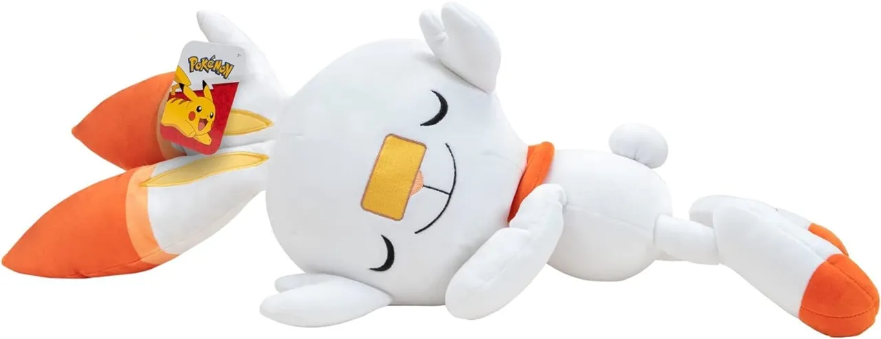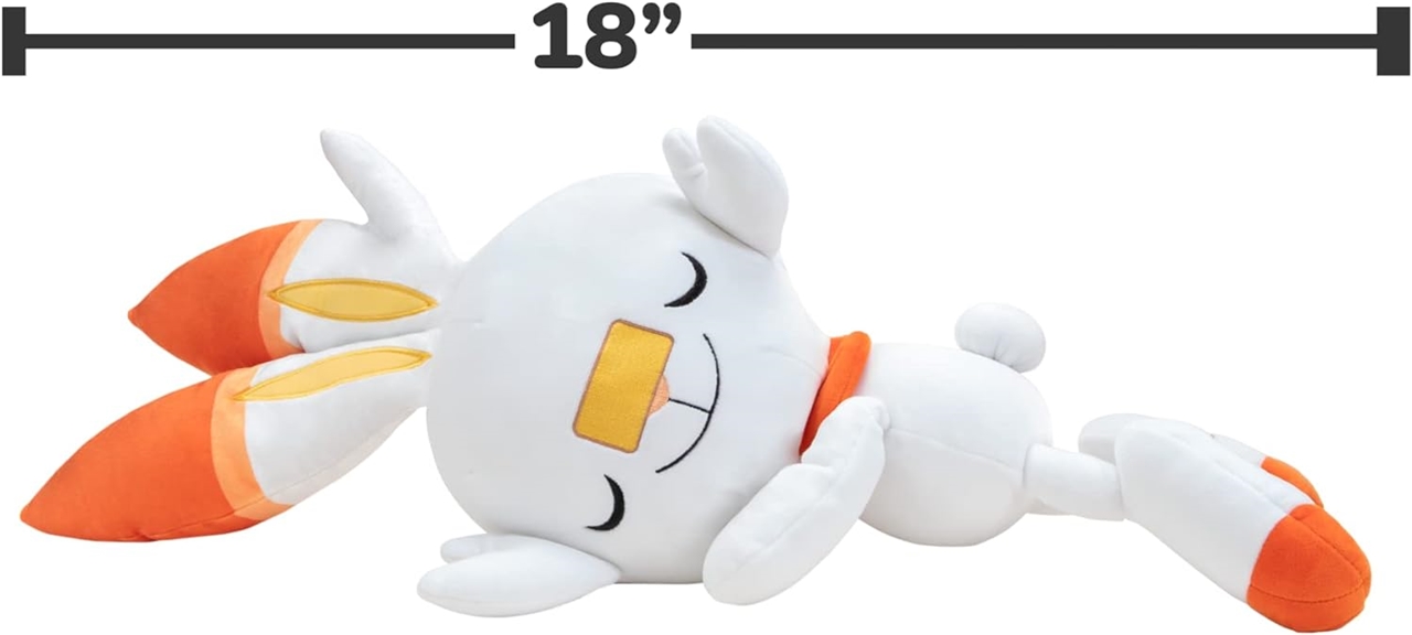Pripravite se na spanje z ljubkim ognjenim začetnim Pokémonom, imenovanim Scorbunny! Ta približno 45 cm velik plišast izdelek v ležeči pozi je idealen spremljevalec na kavču ali v postelji. Zaradi mehkega materiala, iz katerega je narejen, kar vabi k crkljanju. Po dolgem treningu je Scorbunny pripravljen za počitek.