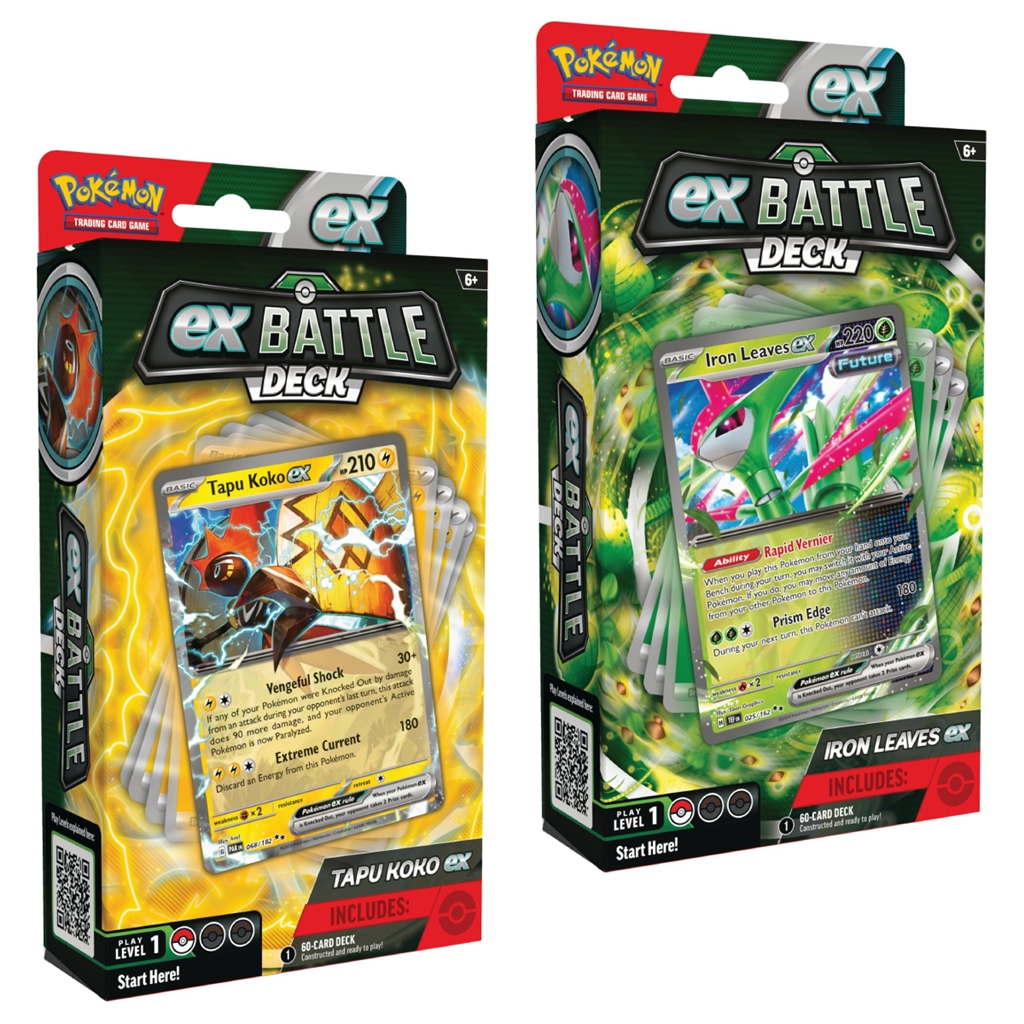 Ta paket kart Pokémon TCG: ex Battle Deck zgrajen okoli močnega Pokémona z imenom Tapu Koko ali Iron Leaves vsebuje vse, kar potrebuje en igralec, ki želi začeti igrati ali si priskrbeti nov igriv, pripravljen deck. Komplet 60 kart je prilagojen tako, da vključuje Pokémone, trenerje, energijske in podporne karte, da lahko igralec takoj sedne k mizi in igra.