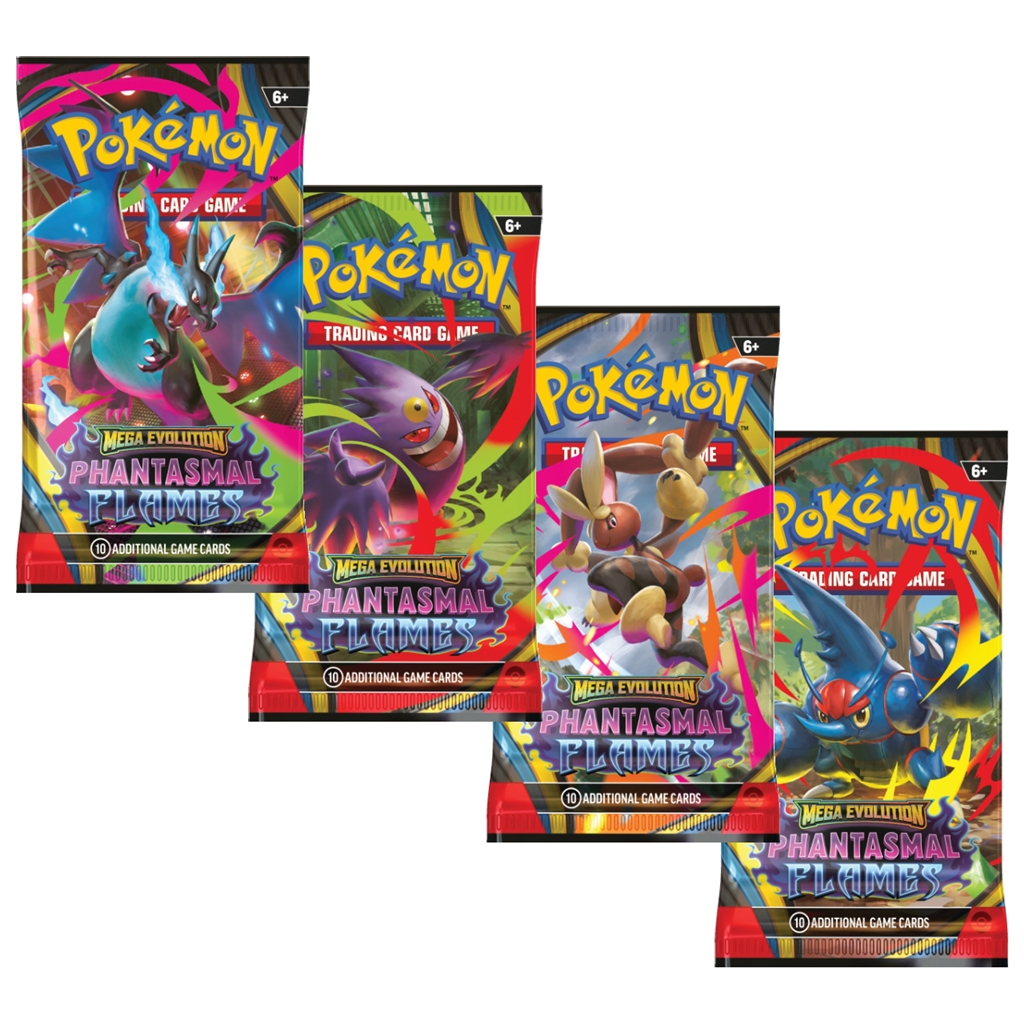 Modri plameni se širijo po temnem bojišču, medtem ko se Mega Charizard X ex dviguje in zre na svoje nasprotnike! S hladnim pogledom, ki se kosa z žarom, se počasi prikaže temna postava Mega Gengara ex in oba Pokémona se pripravljata na napad. Odločni, da dokažejo svoj pogum, se Mega Heracross ex, Mega Lopunny ex in drugi Pokémoni postavijo v vrsto, da v razširitvi Pokémon TCG: Mega Evolution - Phantasmal Flames dajo vse od sebe!