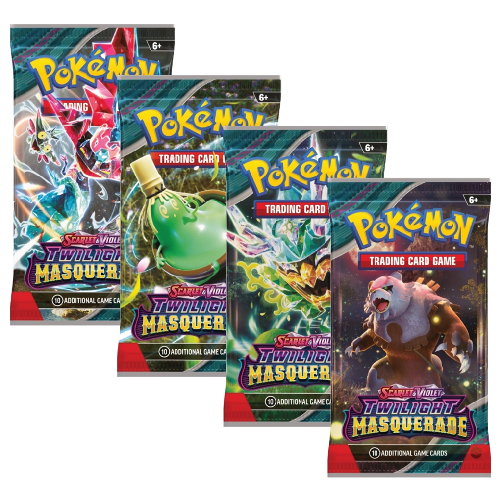 Vstopite v deželo Kitakami, kjer ljudje in pokémoni živijo v harmoniji z naravo. Ljudskih zgodb je tukaj veliko, a ni vse takšno, kot se zdi... Razkrijte skrivnost zamaskiranega legendarnega pokémona Ogerpon, ki se pojavlja kot štirje strašljivi tipi Tera Pokémon ex, in se povežite z novoodkritimi pokémoni, kot sta Bloodmoon Ursaluna ex in Sinistcha ex. Naraščajoča moč Greninja, Dragapult in Magcargo blesti kot Tera Pokémoni ex, dodatne karte ACE SPEC pa dopolnjujejo praznovanje festivala v razširitvi Pokémon TCG: Scarlet & Violet - Twilight Masquerade!