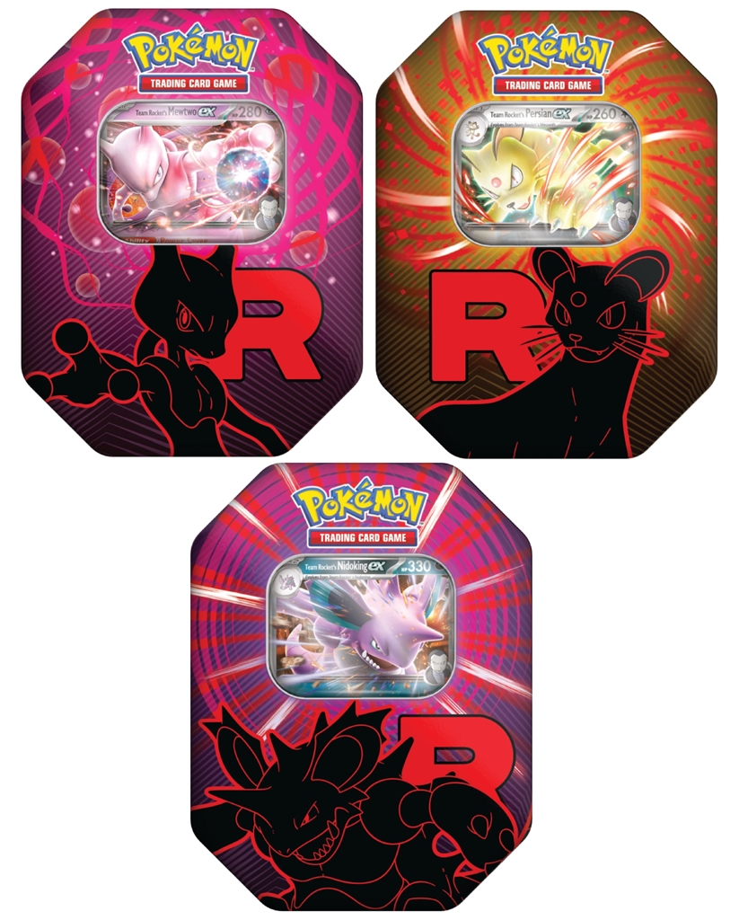 Posebna embalaža v obliki pločevinaste škatlice z motivi Pokémonov, ki pripadajo zloveščim članom Team Rocket - Mewtwo ex, Nidoking ex in Persian ex
