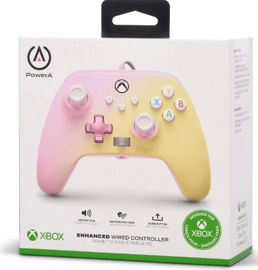 Igralni žični krmilnik PowerA Enhanced za Xbox Series, Xbox One in PC, ki ima priključek (3,5 mm jack) za priklop slušalk, odstranljiv kabel dolžine 3 m, gumb za deljenje, intuitivno razporeditev tipk in dva vibracijska motorčka.