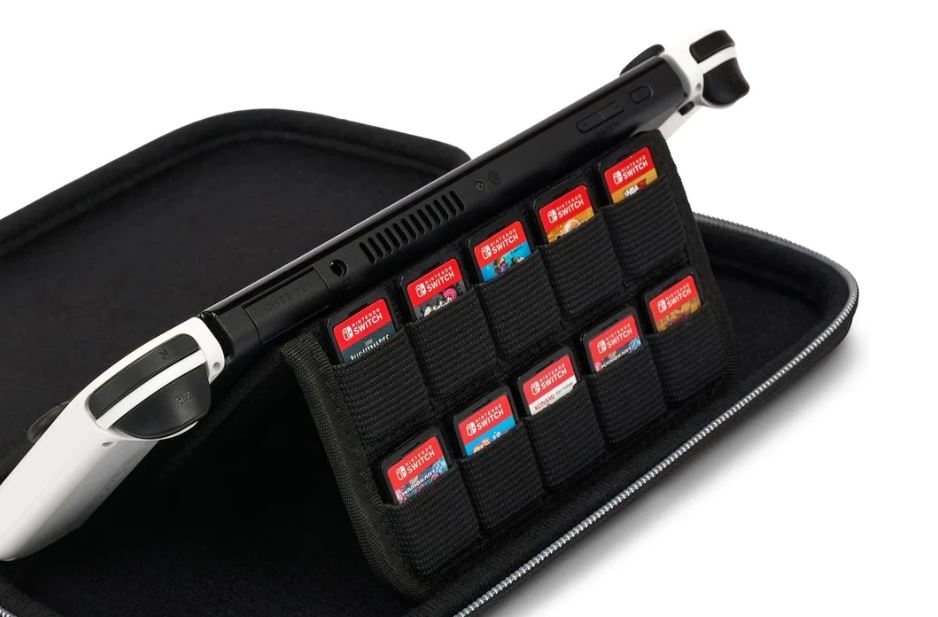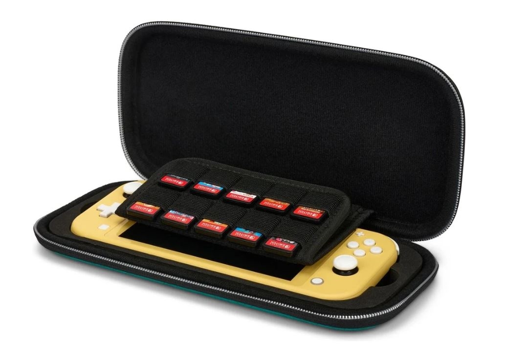 Shranjujte potrebne kable, slušalke in drugo drobno opremo v mrežast žep. Notranja oblazinjena pregrada zagotavlja dodatno zaščito zaslona. Poleg tega torbica sprejme do 10 igralnih kartic za Nintendo Switch.