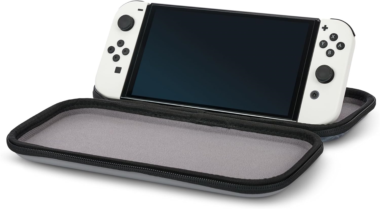 Shranjujte potrebne kable, slušalke in drugo manjše dodatke v mrežastem žepu. Notranja oblazinjena pregrada nudi dodatno zaščito zaslona. Poleg tega v torbico sprejme do 10 igralnih kartic za Nintendo Switch.