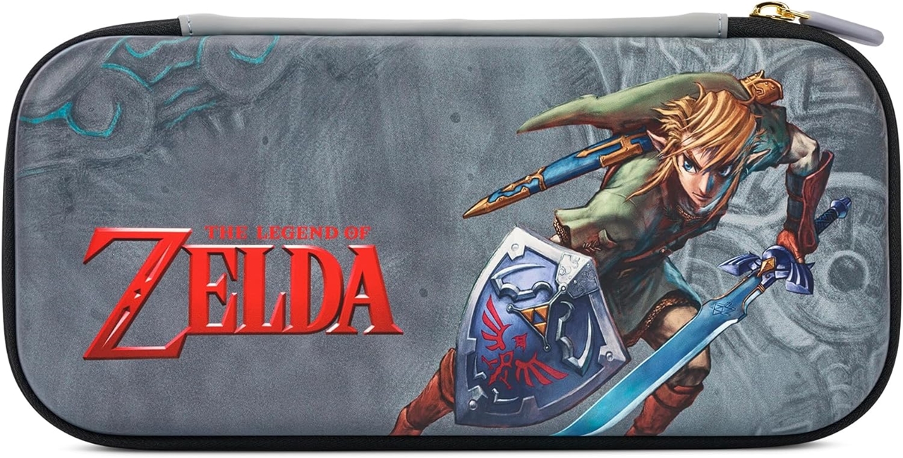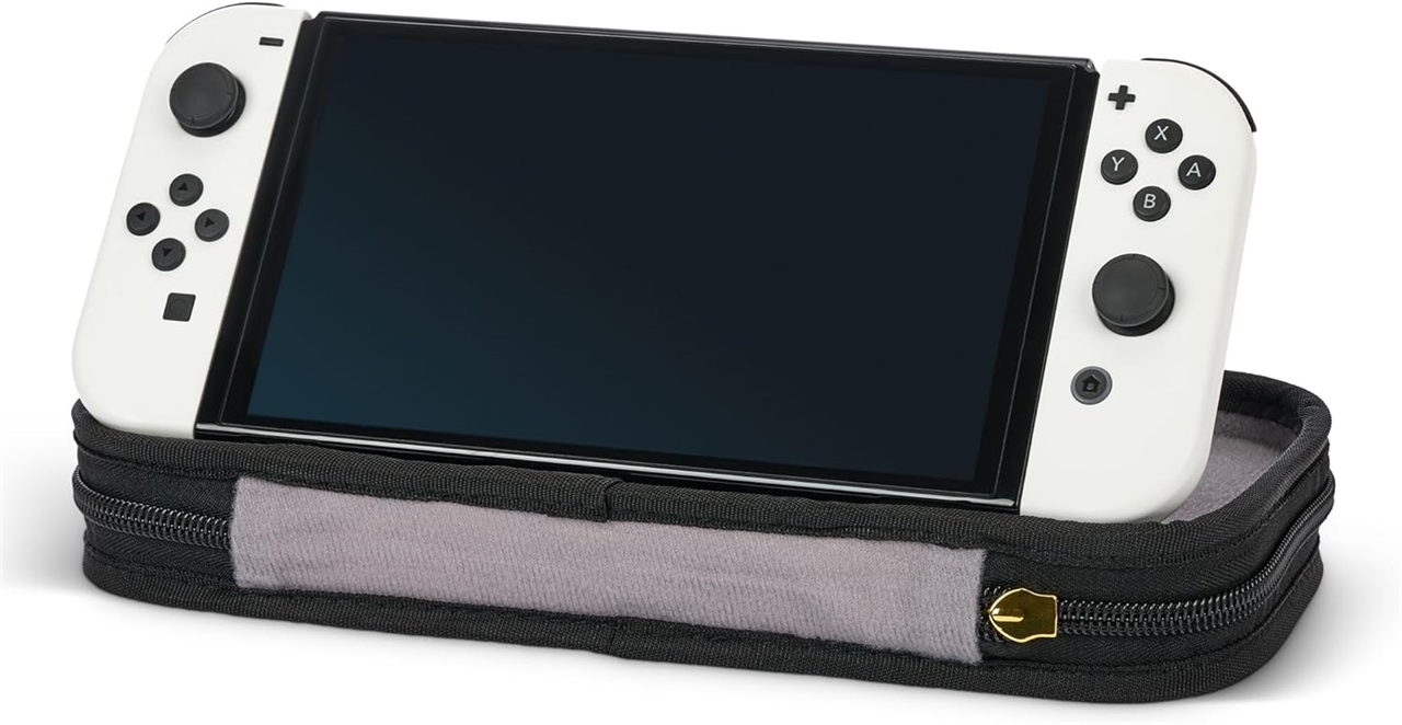 Prenosna torbica v luksuzni izvedbi z motivom Zelde bo vašo igralno konzolo Nintendo Switch, Nintendo Switch OLED model in Nintendo Switch Lite obdržala varno, kamor koli boste šli. Torbica ima nastavljivo stojalo in kakovostno zadrgo.