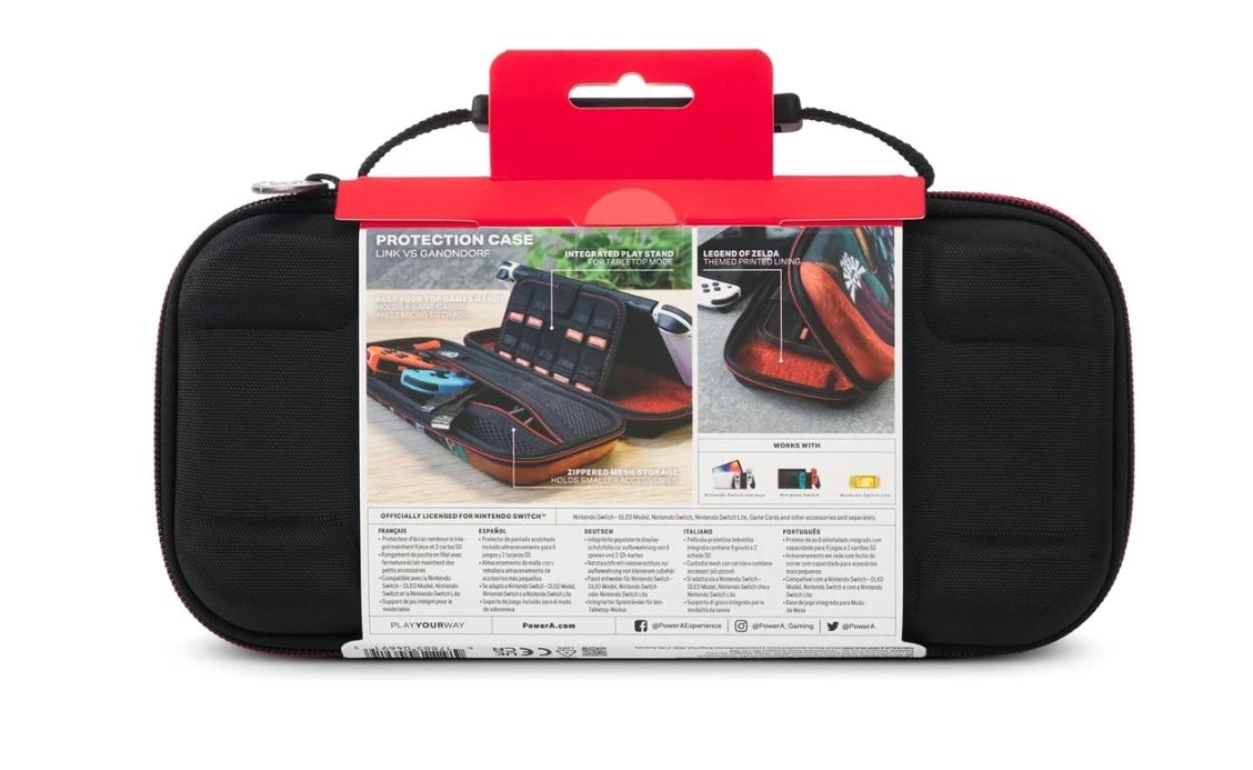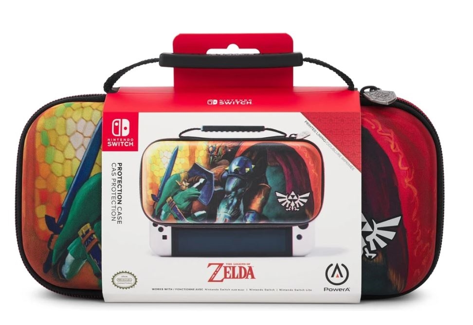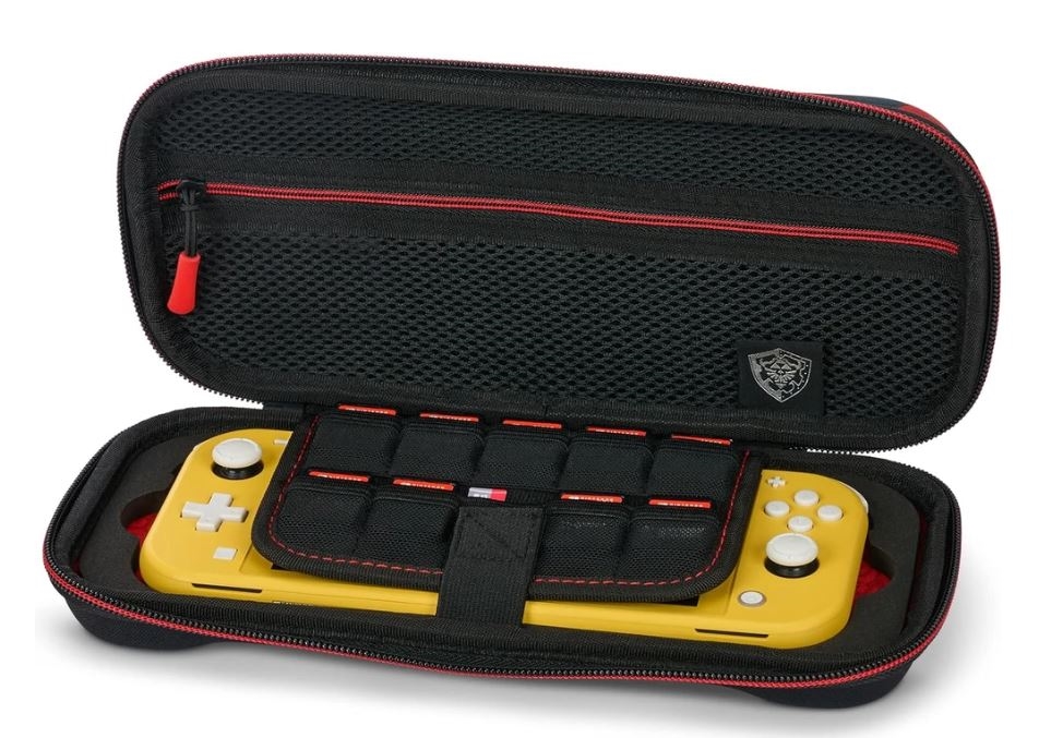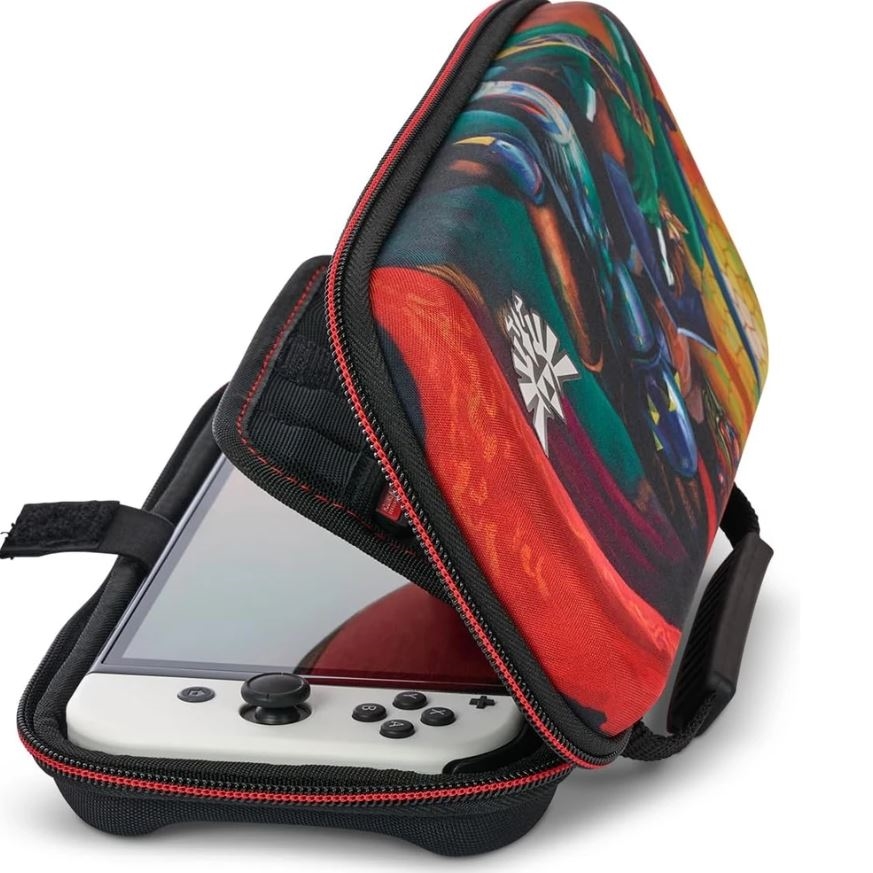 Prenosna torbica v luksuzni izvedbi z motivom Zelde bo vašo igralno konzolo Nintendo Switch, model Nintendo Switch OLED in Nintendo Switch Lite ohranila varno, kamorkoli se odpravite. Torbica ima nastavljivo stojalo in kakovosten drsnik zadrge.