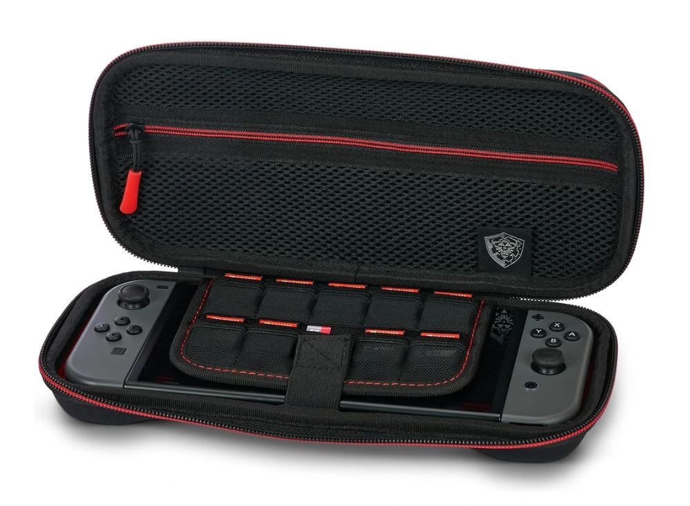 Shranjite potrebne kable, slušalke in drugo drobno opremo v mrežasti žep. Notranja oblazinjena pregrada nudi dodatno zaščito zaslona. Poleg tega torbica sprejme do 10 igralnih kartic za Nintendo Switch.