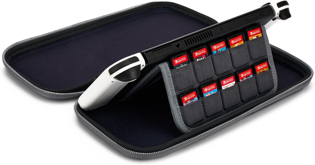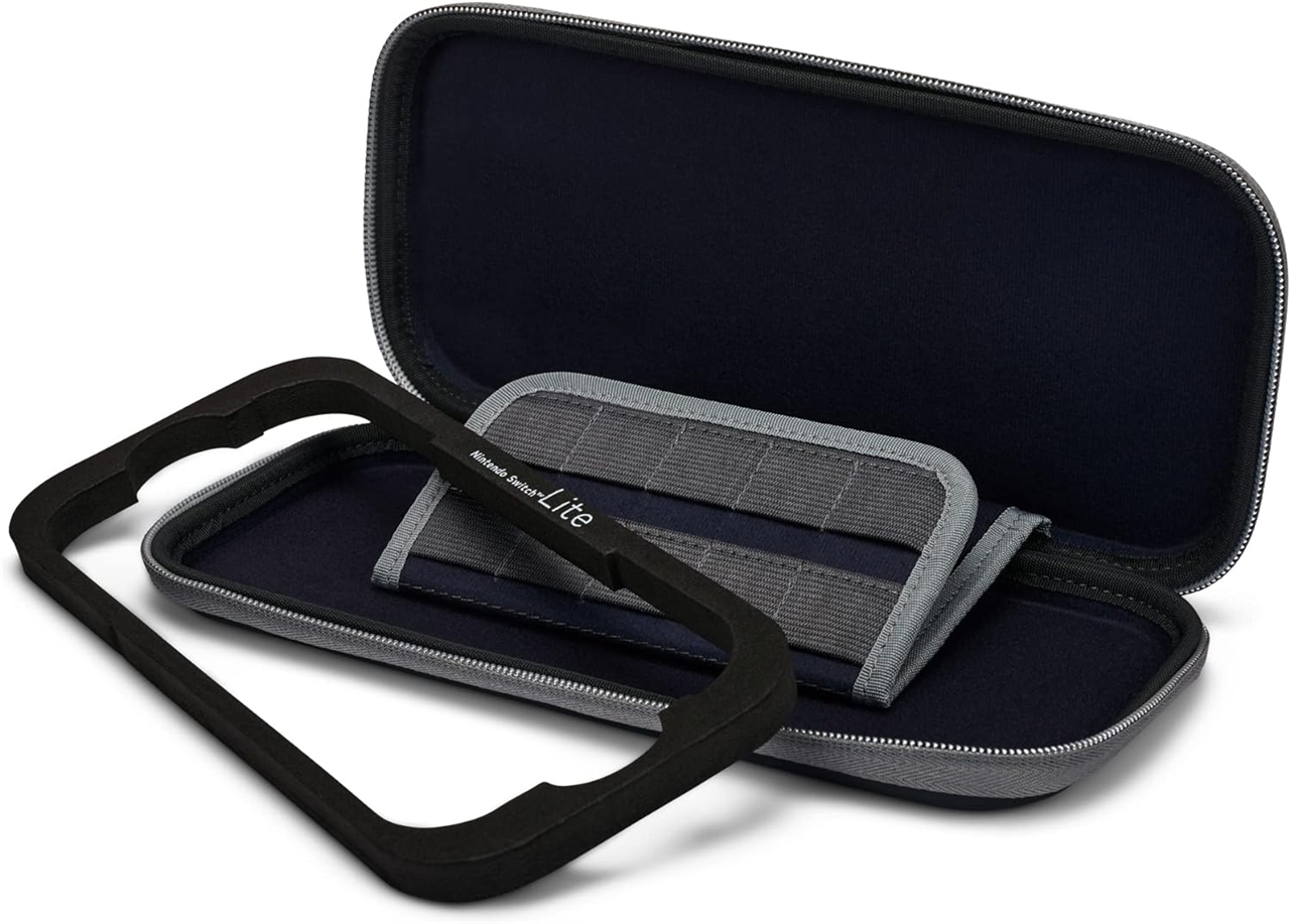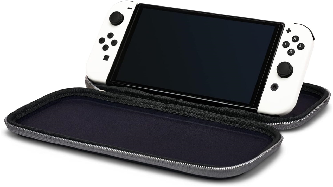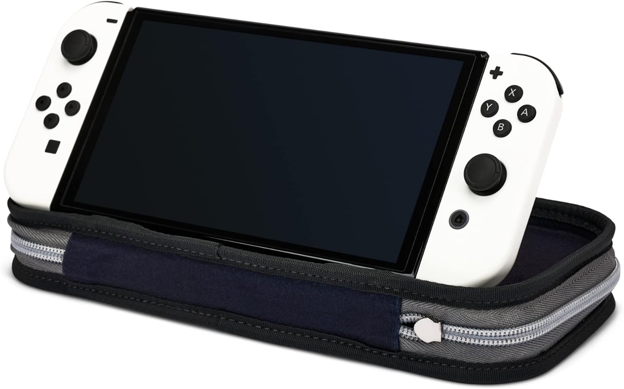Ovitek za Nintendo Switch Lite in OLED. Ovitek ima tudi prostor za igralne kartice in ga je mogoče uporabiti kot stojalo za igranje.