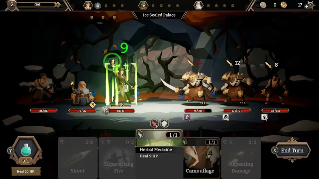 Skrbno izbirajte svoje akcije z uporabo kart in metov kock v poteznem boju.