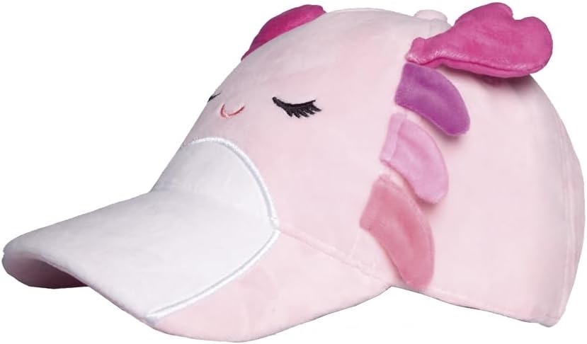 Ta čudovita Squishmallows kapa s šiltom je narejena iz super mehkega prikupnega pliša, ki spominja na marshmallow, in je okrašena z vezenjem.