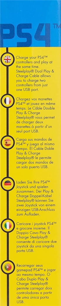 S kablom Steelplay Dual Play & Charge lahko polnite dva PS4 krmilnika prek enega samega USB Type-C porta. Kakovosten povezovalni kabel USB Type-C na USB-A dolžine 3 m za večji doseg hitro polni. Polni se enako hitro kot originalni PS4 kabel. S polnilnim USB-C kablom lahko krmilnike polnite neposredno na igralni konzoli ali računalniku in hkrati igrate. Vgrajene zaščitne funkcije proti kratkemu stiku, prenapetosti, prekomernemu toku in pregrevanju zagotavljajo stabilno in varno polnjenje.