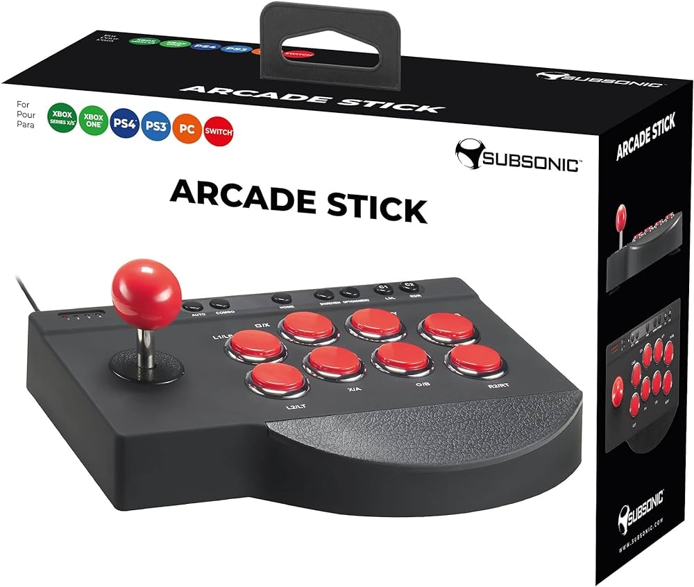 Arcade Stick, igralni krmilnik, je idealna izbira za navdušence borilnih iger. Pohvali se lahko z osmimi akcijskimi gumbi z listnimi stikali, ki zagotavljajo vzdržljivost in odzivnost. Poleg tega krmilnik ponuja funkcijo Auto za hitre ponavljajoče udarce in funkcijo Combo, ki omogoča programiranje posebnih udarcev in gibov.