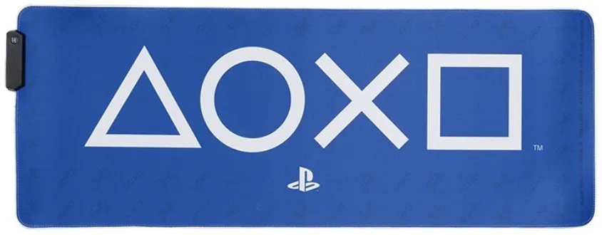 Praktična zvitna igralna podloga za mizo, oblikovana z grafiko gumbov PlayStation. Dvignite raven svoje igralne postavitve s to PlayStation podlogo. Zunanja stran te modre LED podloge za mizo se ob vklopu zasveti. Izberite med dvema barvnima načinoma - modrim ali belim sijajem. Krasi jo takoj prepoznavne ikone krmilnika. Ta podloga, dimenzij 80 cm (31") x 30 cm (11"), je dovolj velika, da se vanjo prilegata polnovredna tipkovnica in miška za večje udobje pri igranju ali delu.