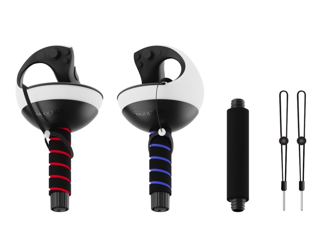 Maxx Tech VR Beat Saber Kit je posebej zasnovan za krmilnike PSVR2. Večnamenski dvojni držali 2v1 v načinu dvojnega držanja in dolgega držanja za širok nabor iger, združljivih s PSVR2 – Beat Saber, Kayak mirage, Whats the bat, Drums Rock, Brain Beats, Synth Riders in druge.