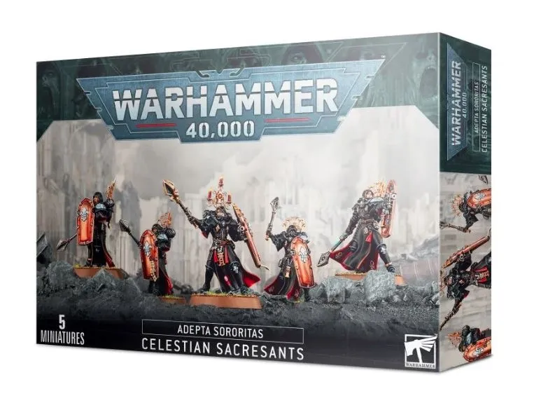 Komplet vsebuje 69 plastičnih kosov, iz katerih lahko sestavite pet Celestian Sacresantov, od katerih je enega mogoče sestaviti kot Celestian Superior, in vključuje 5 okroglih Citadel podstavkov 32 mm.