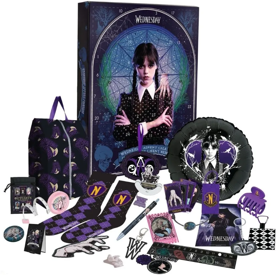 Odkrijte čar temnega humorja in sloga z adventnim koledarjem Wednesday 2025, navdihnjenim s priljubljeno serijo iz sveta družine Addams. Ta koledar prinaša 24 izvirnih licenciranih daril, ki bodo razveselila vse oboževalce Wednesday Addams – in to brez ene same sladkarije! Vsak dan vas čaka novo presenečenje s temno elegantnim pridihom.