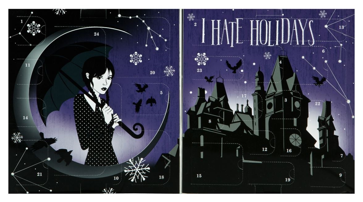 Za 24 vratci adventnega koledarja Wednesday se skrivajo temni in stilski pisalni pripomočki, navdihnjeni z skrivnostnim svetom družine Addams. Sam koledar je pravi magnet za oči: ga je mogoče odpreti ali zapreti s pentljo in je okrašen z edinstvenim motivom Wednesday z metalnim učinkom. Vse drobnosti, ki se od 1. decembra skrivajo za vratci adventnega koledarja, lahko uporabiš v šoli, doma ali v pisarni.